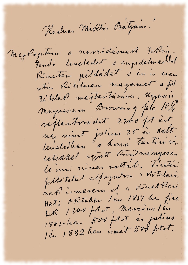 Gothard Jenő levelei Konkoly Thege Miklóshoz - 1881.08.01.