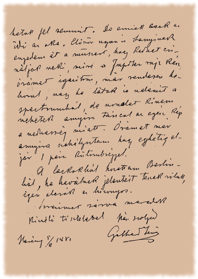 Gothard Jenő levelei Konkoly Thege Miklóshoz - 1881.11.05.