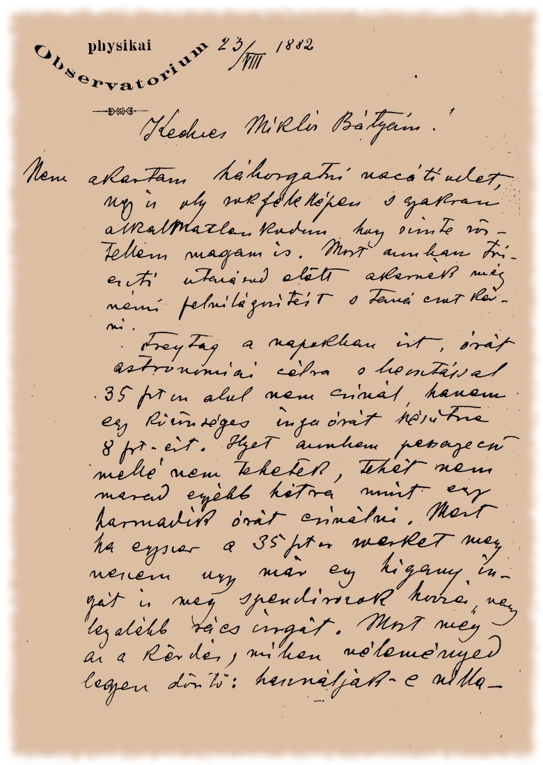 Gothard Jenő levelei Konkoly Thege Miklóshoz - 1882.08.23.