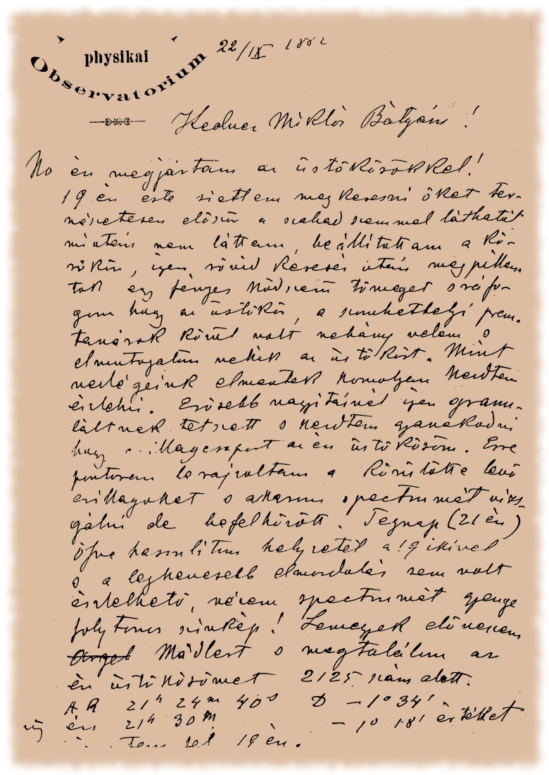 Gothard Jenő levelei Konkoly Thege Miklóshoz - 1882.09.22.